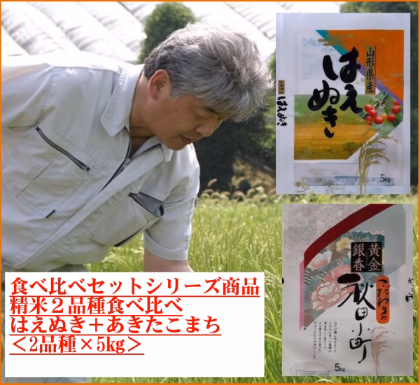 ▼商品名:山形県屋代郷精米セット10㎏「あきたこまち5㎏+はえぬき5㎏」