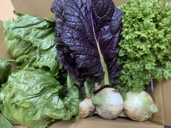 わさび菜はシャキシャキとした食感で、さまざまな食材との相性がよく大人も子どもも楽しめる野菜です♪ 葉が柔らかく、生のままでもサラダなどで美味しく食べられ、見た目のボリューム感と鮮やかな色合い、そして持ち味のピリッとする味で人気があります。