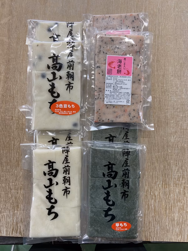 高山産の大豆と黒豆を加えた、ほんのり塩味のお餅です。