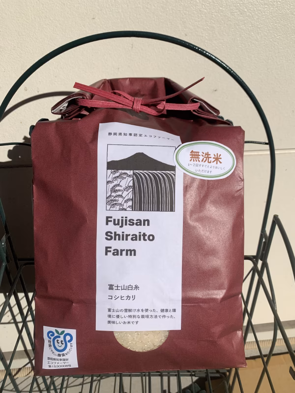 富士山の麓、白糸で作る『富士山白糸ミルキークイーン』。