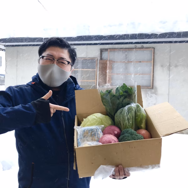 リンゴ、大根、キャベツ、ブロッコリー(在庫がある限り)ほうれん草、伝統野菜ふくたちなど、たまにセリ入り