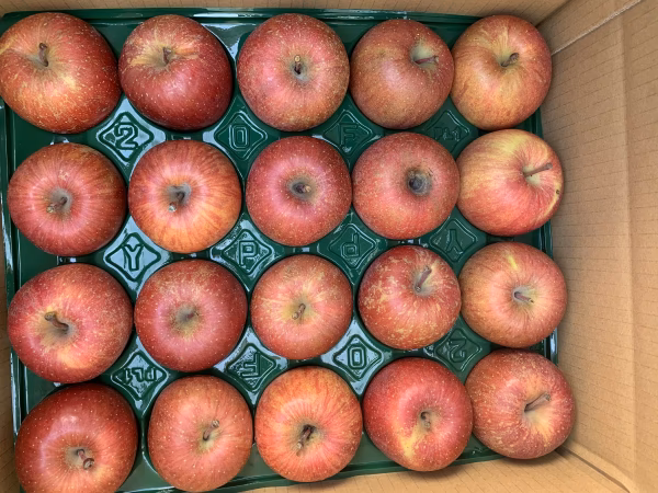サンふじは太陽を沢山浴びて育ったりんごで、今回のりんごは20玉と小ぶりですが味が凝縮されている甘味と酸味のバランスが取れたりんごになります。