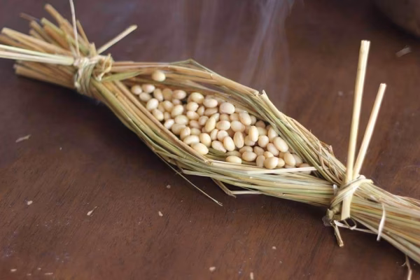 藁を筒にした「藁づと」の中に蒸した熱々の大豆を詰めて保温するだけで、市販の納豆にはない、お豆の味濃〜い納豆が出来上がります。