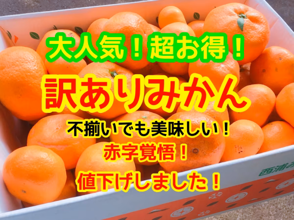 青島みかんの訳あり品です。見た目はイマイチ、形も不揃いですが、味はとても美味しいです!!ご家庭用にどうぞ!!