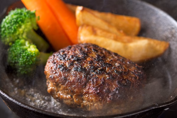 100%里山牛のミンチを使用していますので、お肉の食感が強い、食べごたえのあるハンバーグです♪