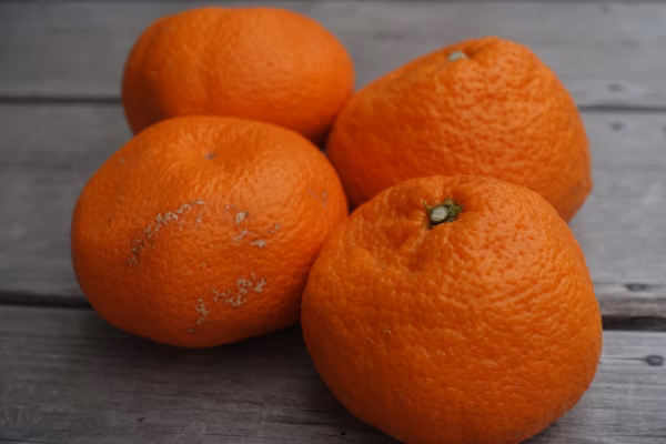青島ミカンは、12月に収穫して貯蔵庫で寝かす事で酸味が抜けて美味しくなるのですが、特に皮の厚いミカンは長く貯蔵できて3月頃には水分も程よく抜けて美味しくなります!見た目はしわしわ不細工なんですが、水分が抜けたぶん甘くなります。