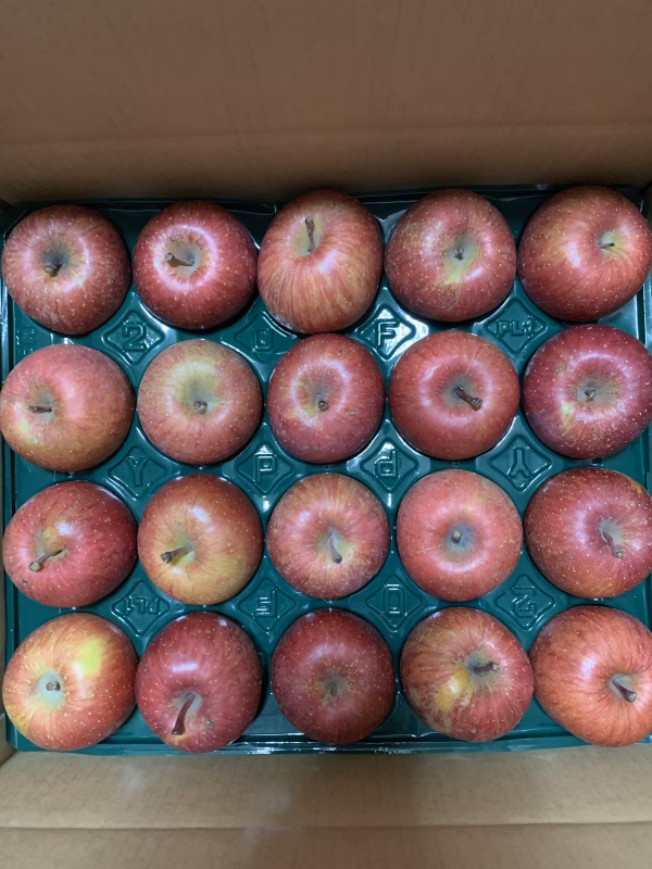 サンふじは太陽を沢山浴びて育ったりんごで、今回のりんごは20玉と小ぶりですが味が凝縮されている甘味と酸味のバランスが取れたりんごになります。