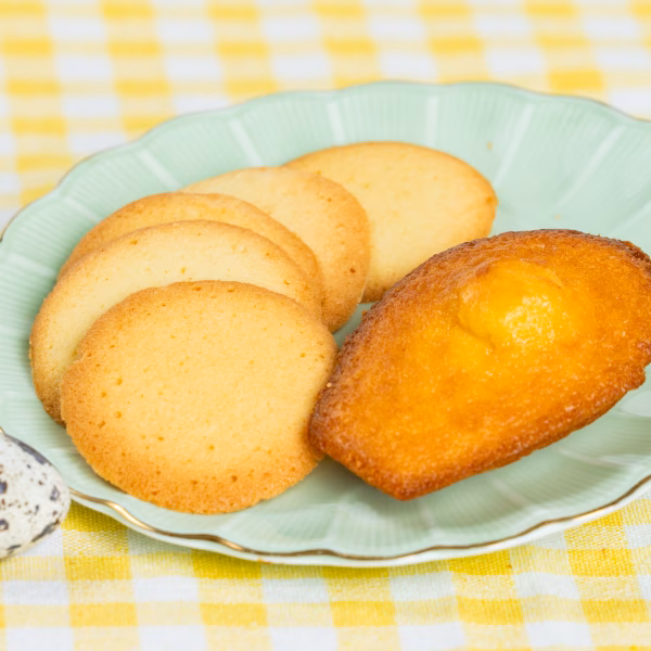 マドレーヌ・・ほんのりレモンの味がしてうずらの有精卵の濃厚な味わいがあります。
