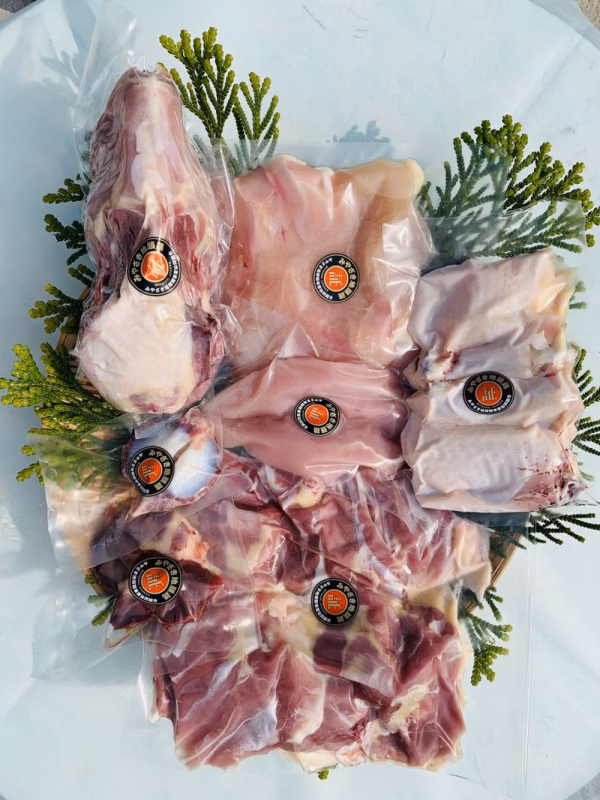 モモ2枚、ムネ2枚、ささ身2本、鶏皮+手羽元+先、鶏ガラ、砂ズリ、