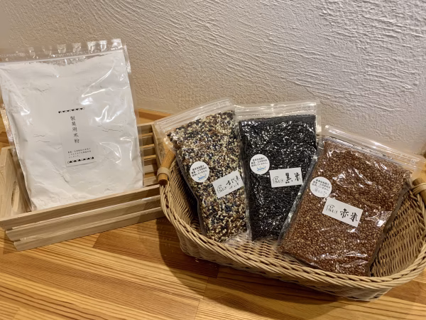 こちらは、製菓用米粉 400g と古代米【古代米ブレンド、黒米、赤米】の中から1種類選べるセットとなっております。