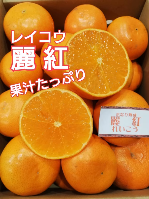 麗紅は、清美オレンジとアンコールオレンジを掛け合わせたものに、マーコットオレンジを交配し生まれたみかんです。果面はなめらかで美しく、外皮も薄く豊かな食感です、甘くて、果汁たっぷりをご賞味ください。