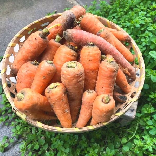 正規品の基準に満たない「規格外の人参(ニンジン)」ですが、お味は自然農法ならではの甘みと香りが詰まっています♪