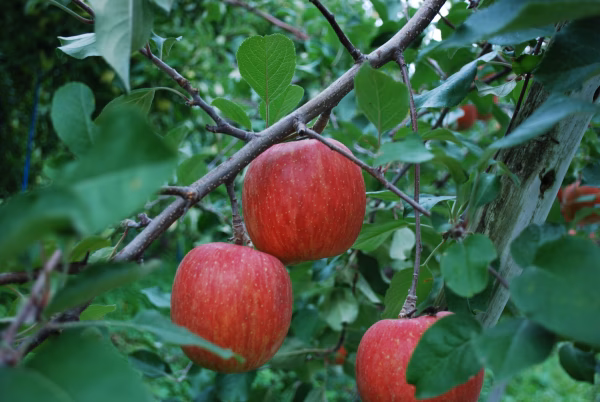 近くには弘前市ホームページにて紹介されている名水「桂清水」や「御茶水」もあります。朝晩の寒暖差により甘くて歯ごたえのあるしっかりしたりんごに育ちます。