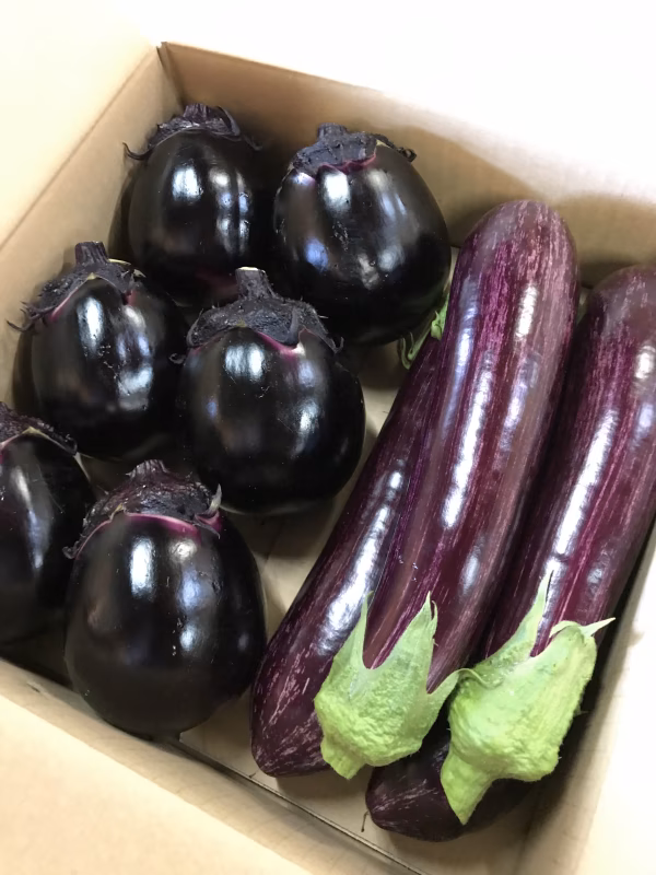 ※ 商品画像は丸茄子とゼブラ茄子になります。白茄子は今年からなのでまだ写真が間に合わず、掲載できなくてすいません。