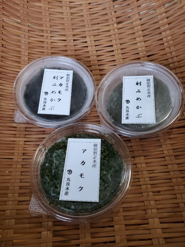 【匂わないアカモクへのこだわり】 丸良水産では、東京湾に自生している天然のアカモクを採取し、加工しています。 アカモクは群生場所により成熟の 度合いに大きな違いがありますが、ただ成熟しているだけではなく、雑藻等による汚れが少ない物を選び採取しています。 そこから更に質の良い物を選り分け、小エビ等の異物の除去してようやく加工することができます。 また、選別後の加工の際にも様々な工夫をし、アカモク独特のクセが少なくなるように努力しています。 【わかめ養殖:猿島わかめ】 猿島ワカメとは、神奈川県の無人島である猿島の近海で養殖されている、ワカメです。 特徴としては、ヒダが深くて多く、葉は柔らかいです。 わかめは交配し易く、品種が均一になりやすいのですが、大事に『猿島わかめ』の種を守っている人から種を貰い、養殖を行っております。 めかぶら一つ一つ丁寧に手洗いしています。 【江戸前の豊かな理由】 江戸前というのは、神奈川県の観音崎と千葉県の富津岬を結んだ東京湾内の事を言います。外洋と河川から養分が流れ込み、東京湾内を巻き上げる様に反時計回りで潮が流れています。なので、観音崎のすぐ隣の走水には、豊かな養分が流れて来るのです。