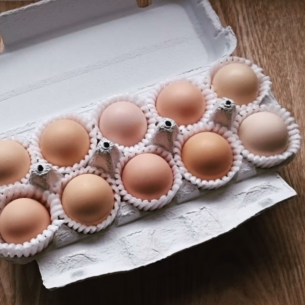 ひよこの時からエゴマやおからを食べて、広々としたハウスの中で仲間と共に暮らし、巣箱に大切に産んだ貴重な卵です。
