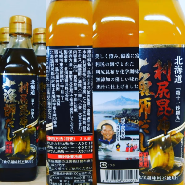 昆布の最高級ブランド‼ 利尻島産利尻昆布のみで抽出した11倍濃縮だし‼ 化学調味料不使用で昆布のみの『UMAMI』をご堪能下さい👋 お出汁は、どのジャンルの料理にも合うと思いますよ✨ 昆布漁師が作ったお出汁をご自宅のシンク周りに1本いかがですか‼