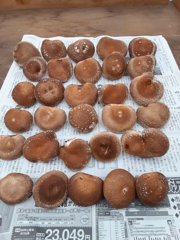 頭のサイズが3~8㎝程度のサイズが混じった菌床椎茸約30個