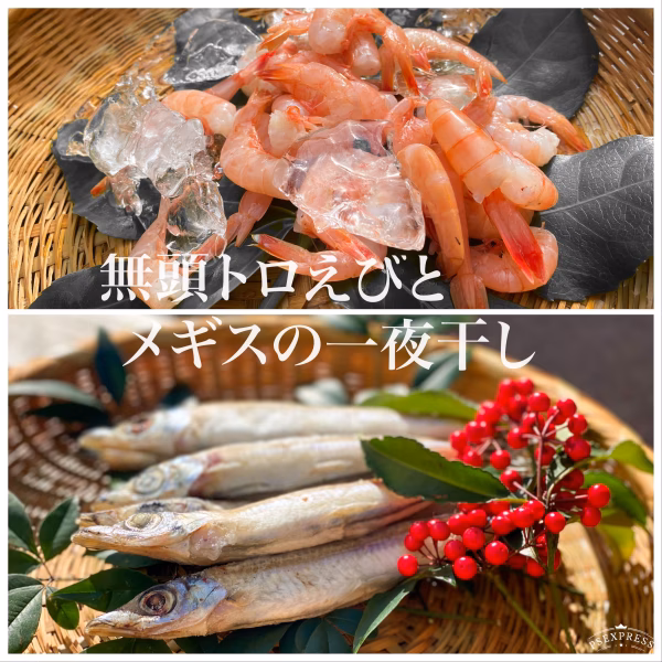 エビは水揚げされる際、水圧や他の深海魚に潰されてしまうことが多く、選別をすると頭が取れたり潰されたり規格外が多くでます。しかし鮮度は変わらず抜群!そこでこれらのエビの頭部分をを取り除き、使い切れるように小分けにしました。またブヨ(殻がやわからい)エビも時々、入っております。