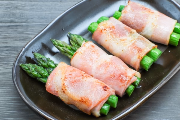 なんとその日の朝採りアスパラと雪乃醸薄切りベーコンをセットにして当日発送。