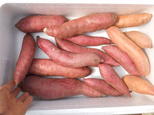 - サツマイモは新聞紙で包んで段ボール箱に入れる等10℃以下にならないよう保存して下さい。