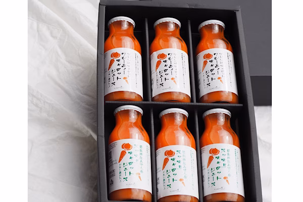 着色料、保存料、砂糖を一切使用していません。 自然の恵みをたっぷりうけて育った神重農産の3代目がつくるにんじんをギュッと搾りました。水も一切使わず、原料は人参とレモン果汁のみ! 神重農産のにんじんジュースはとってもフルーティー! えぐみのない甘い濃厚なにんじんジュースだから子供も大人もぐいぐい飲めます! 体が喜ぶ!毎日、朝食で飲みたいジュースです。 🥕フルーティーな味わいのマドンナキャロット(神重農産オリジナルブランド) 🥕すっきりとした口あたりの碧南鮮紅五寸にんじん(大正時代から伝わる愛知の伝統野菜) の2種類のジュースぜひ飲み比べをお楽しみ下さい。 ギフトにもおすすめです。 ─────────────────────── ☆人参ジュースの製法へのこだわり 人参を収穫し少し寝かせることで、でんぷんが糖に変わりさらに甘みがまします。 そんな人参の頭と先の部分を落とし、人作業で1本1本丁寧に皮をむき、贅沢に美味しい部分のみ使います。 ジューサーにかけ、口当たりがよくなるようにします。レモン果汁を加え、煮たてないように灰汁をとりながら加熱します。丁寧に人の手でつくられた極上のジュースです。 ☆ジュースに使う人参は糖度9・5度 マドンナキャロットと碧南鮮紅五寸にんじんの2種。 愛知県碧南市で「元気になる野菜作り」をテーマに独自の栽培方法で、ミネラル、アミノ酸、酵素等を与えて野菜の免疫力を高め食味が良くなるように野菜を作っています。 神重農産が育てる人参のなかでも、一年で一番甘みののる冬人参だけを使ってつくっています ※生で食べても美味しいとリピーターが続出したマドンナキャロットは、 専門の分析センターで分析したところ… なんと!抗酸化力は平均値の1.3倍! 甘みは平均より甘く 糖度9.5度! えぐみを表す硝酸イオンは平均値の3割しかなくえぐみが非常に少ないという結果がでました。 (2021年1月データー) にんじんがおいしいから、フルーティーでぐいぐい飲めるジュースです。 もちろん人参は体もよろこぶ栄養のある野菜! 美味しく飲んで、体も心も元気に免疫を上げましょう。
