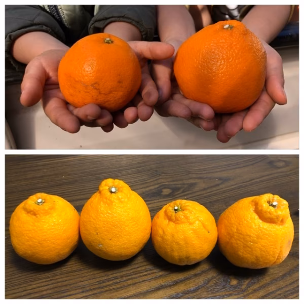 有機栽培で、農薬、化学肥料は一切使用していないため、皮の表面はきれいでなかったり、風によるスレがありますが中身には影響ありません。