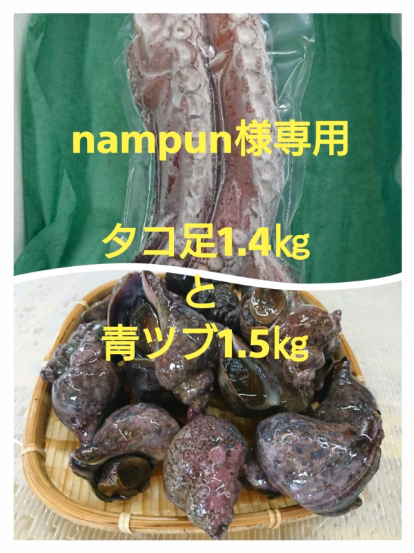 nampun様専用 青ツブ1.5㎏と小樽産茹でタコ足2本1.4㎏(冷凍)