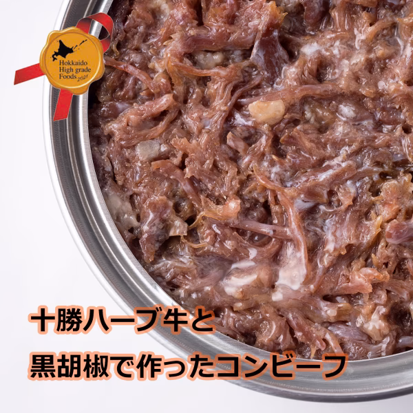 じっくり炊いて手ほぐししたコンビーフでしっとりジューシーに仕上がっています。十勝ハーブ牛でしか味わえないオリジナルコンビーフです。