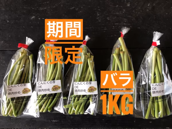 今までにんにく生産者しか食べることができなかった『シャキシャキにんにくの芽』。一般的に流通していない若く柔らかい摘みとったにんにくの芽のことです。