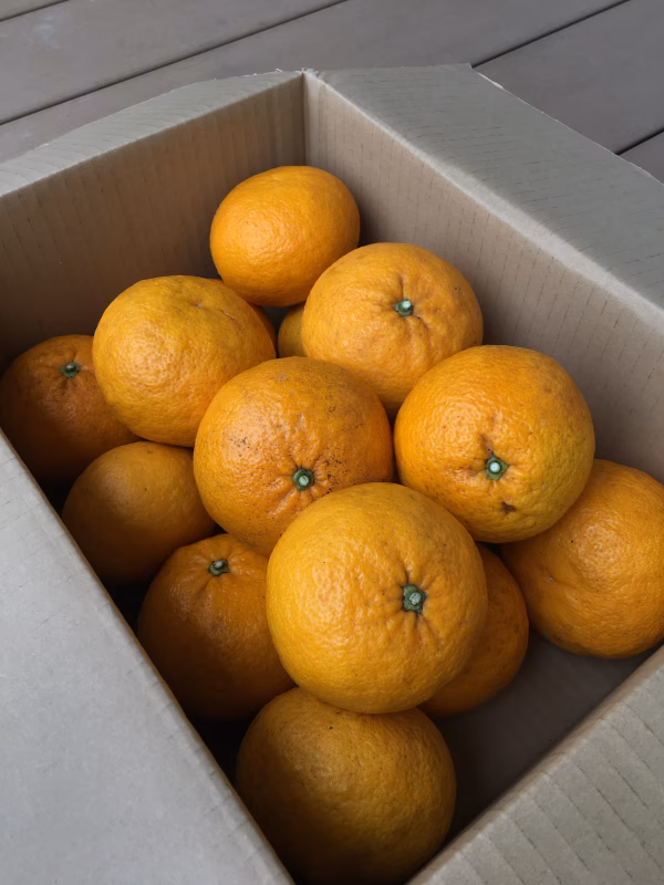 「谷川文担」と「川野夏橙」の交雑によって生まれた甘夏です。農薬、化学肥料はいっさい使っていませんので、安心して召し上がっていただけます。