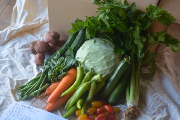 農薬と化学肥料を使わずに栽培した旬の野菜10種類のセットです。