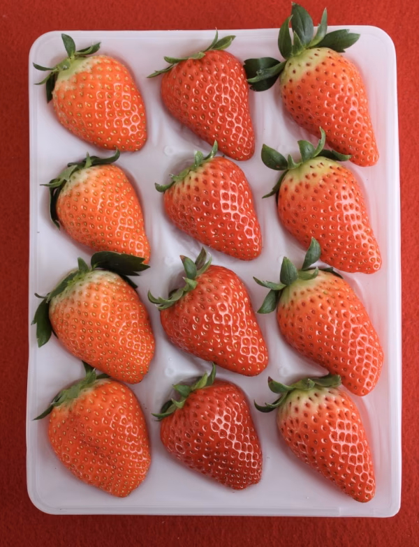 1990年から交配を始め20年かけて開発したイチゴで、2010年(平成22)に品種登録されました。名称にも「かおり」がつくほど上品な香りがします。果肉は比較的に固めてですが、果汁が多く酸味が穏やかでさっぱりとした甘みを感じるイチゴです。
