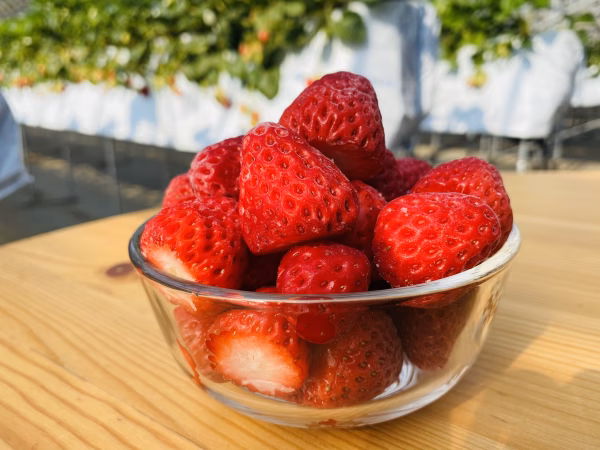 急速冷凍することで、水分を逃がさないため、凍ったままでもジューシーで、特に削りいちごに練乳をかけるだけでも絶品です。また、スムージー、ヨーグルトソース、手作りジャムなどにもおすすめです。