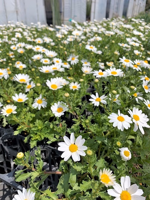 径3cmほど、中心が黄色の白い小ギクで、花期が長く育てやすい人気の一年草です。育てるのが簡単で初心者さん向きの花苗です。一年草。白い花は他の花と相性が良いため寄せ植えにもお勧め。