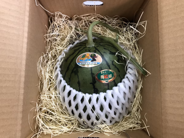 果肉は締まりがあり、食べた時にはシャリ感を強く感じることが出来る。1玉の大きさが2.5kg前後の小玉品種で、楕円形をしているので冷蔵庫に入れやすい。