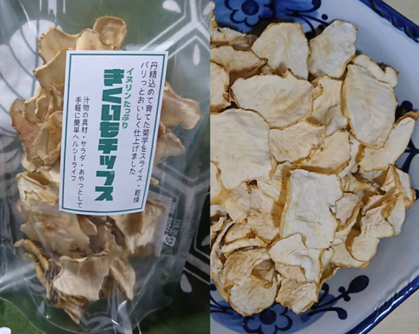 そのままおやつとして食べてもよし、お茶に入れれば菊芋茶、汁物やサラダなどのトッピングなどアイデア次第で菊芋チップスのバリエーションは広がります。毎日の食事に役立つ逸品です。
