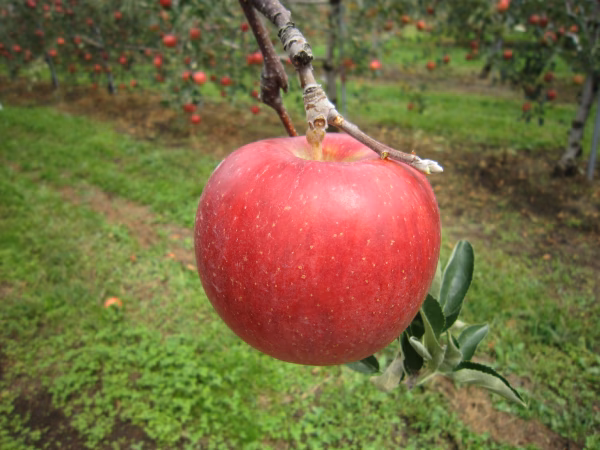 紅玉の子供ですが、酸に強みがなくさわやかな甘みが特徴です。歯ごたえのある触感、多汁でとてもみずみずしいのが特徴の品種です。