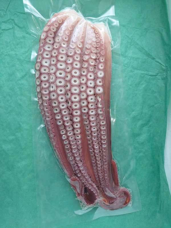 タコ箱漁で水揚げされたタコを即浜茹でし、真空パックをして急速冷凍しています。