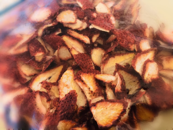 当園で採れたいちごをスライスし、専用のドライ乾燥機で52℃でら22時間乾燥させました。