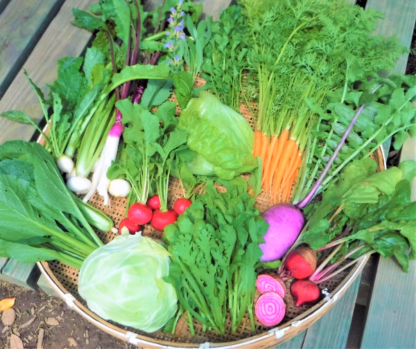 チンゲン菜、ターサイ、カブ、唐辛子、二十日大根、ほうれん草、アイスプラント、人参、ジャガイモ、さつまいも、ふきのとう、キャベツ、ブロッコリー、小松菜、コールラビ、ルッコラ、長ネギ