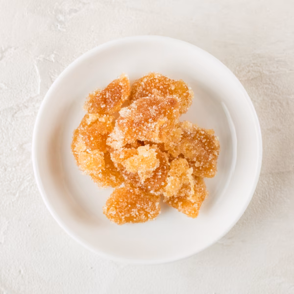 生姜を蒸し上げることで独特の味わいを引き出します。その後に土鍋でレモンと合わせてじっくり火を通し、冷ました後に生の蜂蜜をたっぷり加えます。低温で乾燥させて出来上がりです。