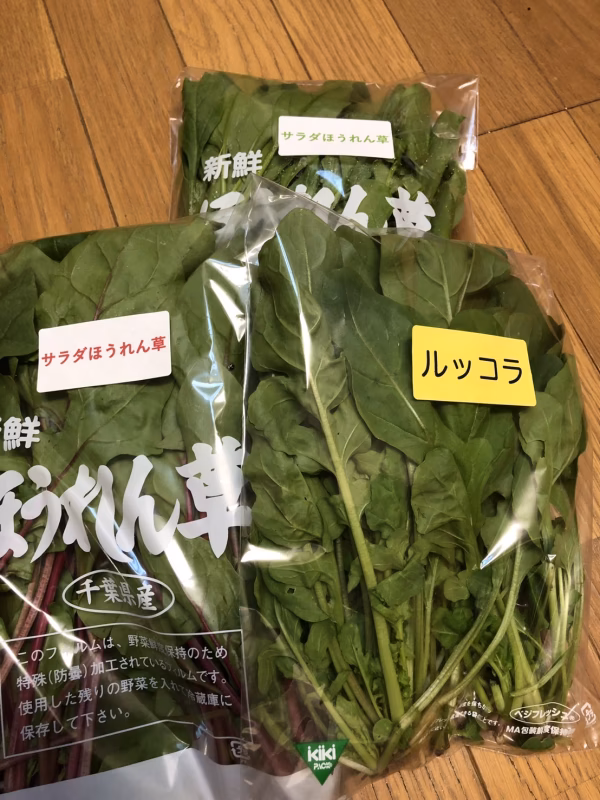 我が家ではこのサラダほうれん草にルッコラをちょっと入れて食べます。