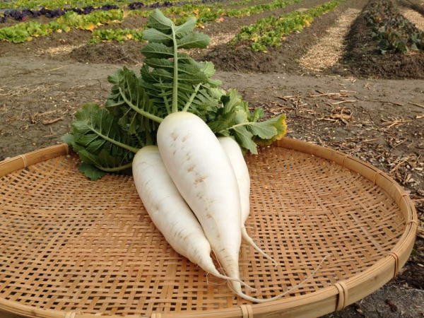 自然栽培で育てたえぐみの無いおいしい大根です。農薬はもちろん使用していないので葉っぱまで美味しく安全にいただけます。肥料も使用せず畑の地力を十分引き立たせ作っているので硝酸体窒素の含有率も格段に少なく安全。、安心していただけます。