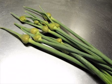 日本国内で流通しているにんにくの芽はほとんどが中国産(冷凍)です。国産のにんにくの芽は直売所や道の駅などで見られますが、スーパーなどにはあまり出回っていません。