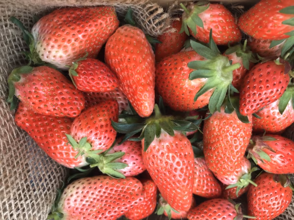 去年10月定植以降無農薬の、特別栽培でつくっています。さまざまな大きさのイチゴを1kg箱詰めにしてお送りします。