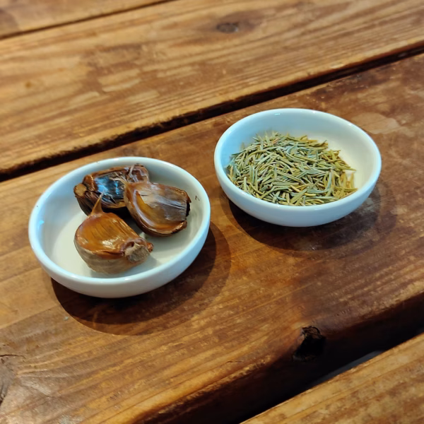 北海道・上富良野町で7月に収穫したにんにくで作った黒にんにくに、東川町産のローズマリーで香りづけしました。濃厚な甘みと、ローズマリーの上品な香りが特徴のハーブ黒にんにくに仕上がりました。きっと、黒にんにくが苦手な人でもドライフルーツ感覚でお召し上がりいただけます。にんにく特有の臭いがほとんどなく、皆様に毎日美味しく食べてもらい、健康になっていただくことを願っています。