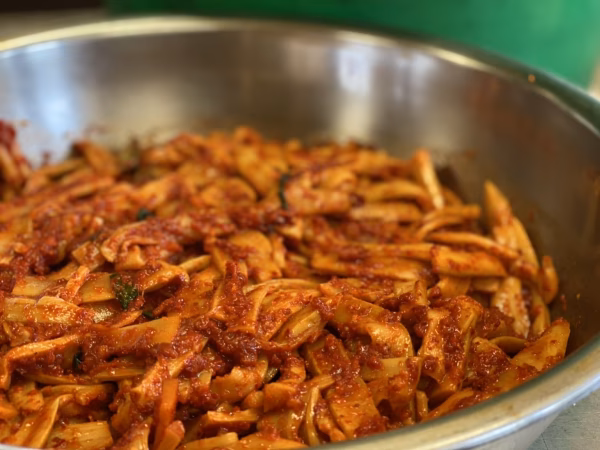 - メンマ(中国産)、大根、ネギ(越谷市産)、にんにく、上白糖、ニラ、桃果汁、昆布だし、食塩、鰯エキス、鰹エキス、カナリエキス、アミの塩辛、調味料(アミノ酸等)