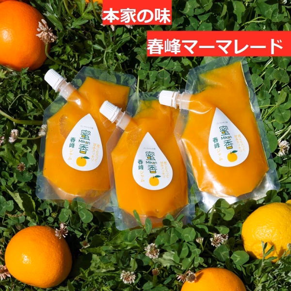 ◎春峰マーマレードは、大ちゃんの畑から誕生した柑橘。爽やかな甘みと清美オレンジの香りのあるマーマーレードをお楽しみください。