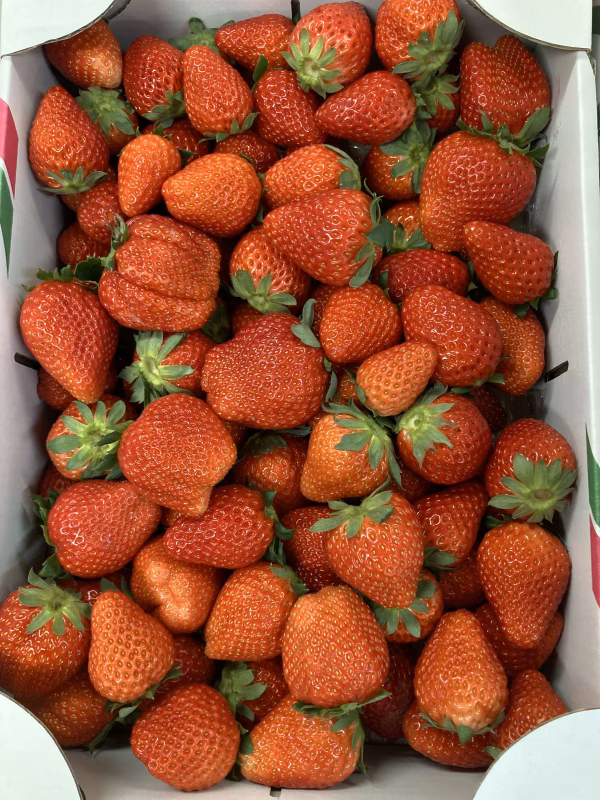 そのまま食べられる品質のいちごのみ、箱に詰めますが、バラ詰めということで、多少輸送傷みが生じると思います。傷みのあるものはスムージーやジャム、いちごソースなどにお使いください。